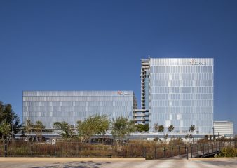 קיר מסך למפתחים גדולים בחיפוי נירוסטה