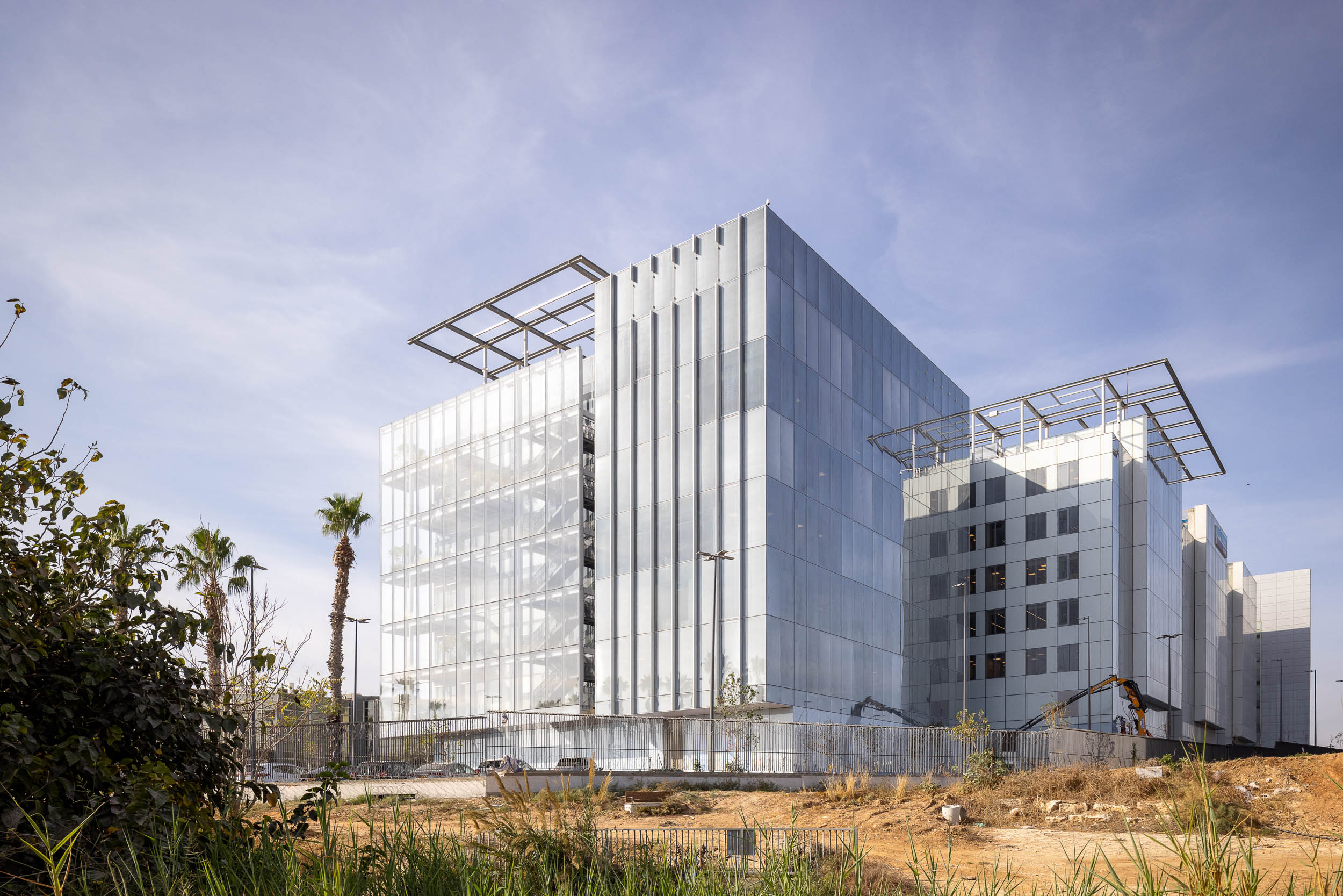 Structural glass curtain walls with insulating glass, one and a half meters by 4 meters, will be installed in the building facades, including electric operation for radiation filtering and control of natural light in the office spaces.