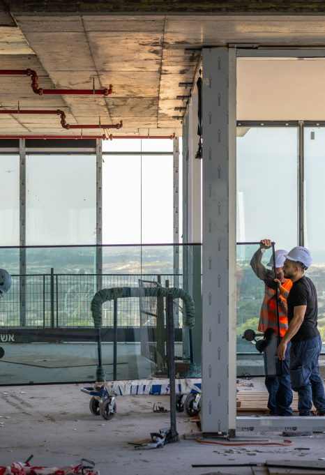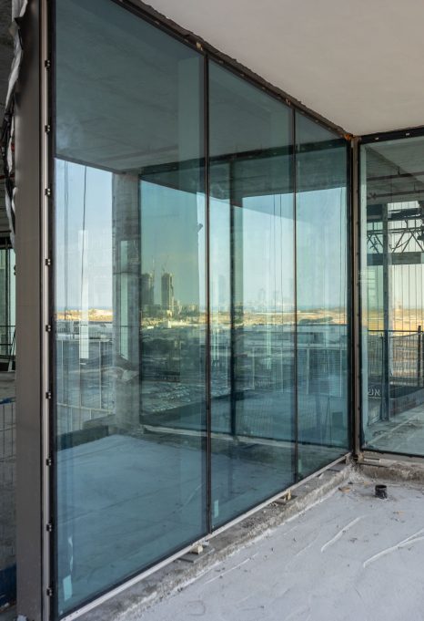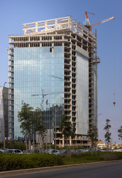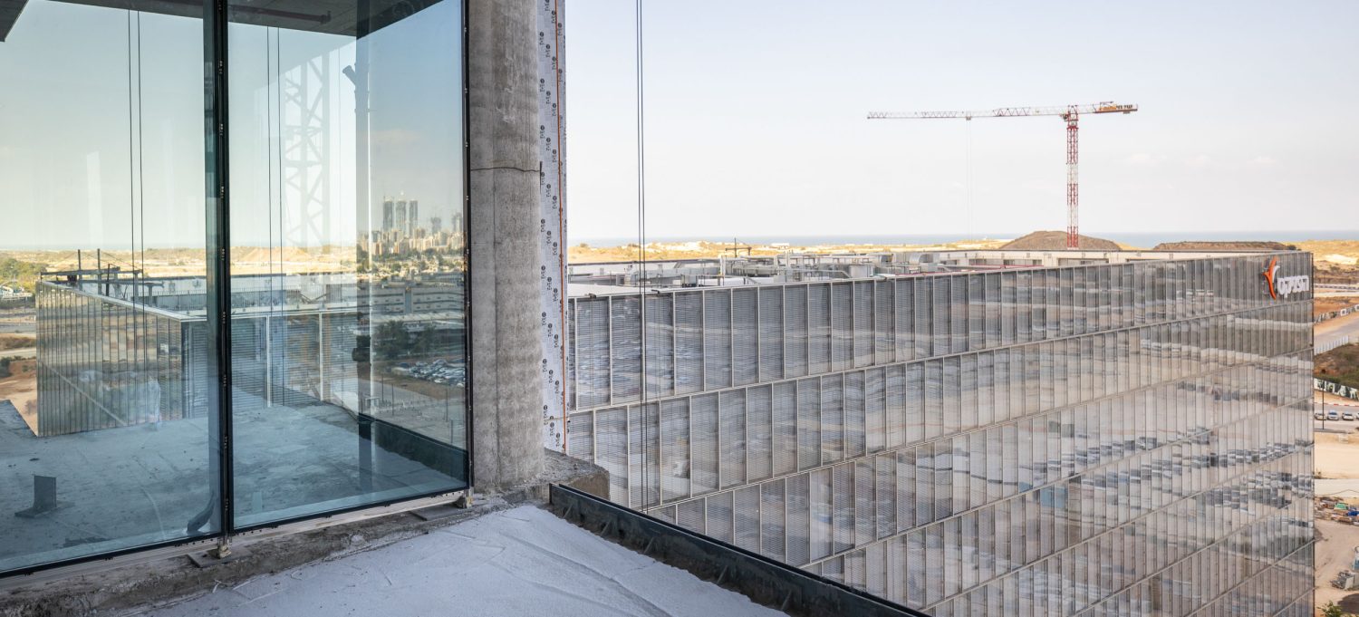 לובי המבנים תחום בקירות זכוכית בגובה של 10 מטרים, ללא מסגרות משניות, המעוגנים בטכנולוגיה ייחודית להשגת תחושת שקיפות ופתיחות יוצאת דופן.
