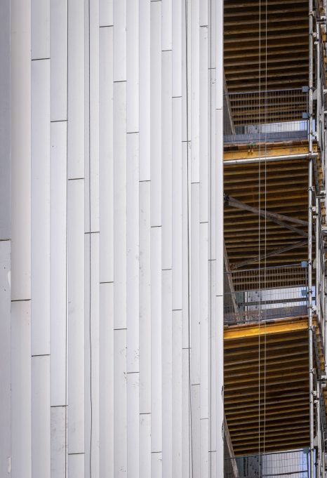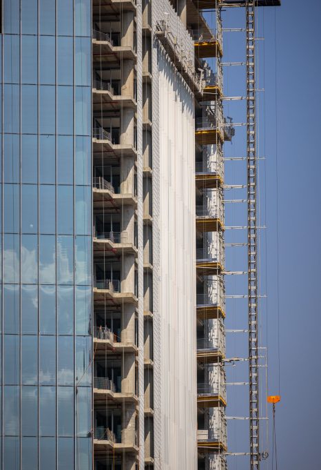 חזיתות המבנים עטופות במערכת קיר מסך שפותחה במיוחד עבור הפרויקט, ומשלבת סנפירים חיצוניים בעומק של כ-30 ס״מ, המספקים הצללה ומראה אדריכלי ייחודי.