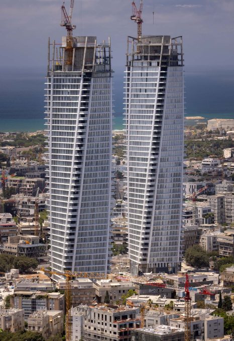 צורתם הגאומטרית המפותלת של המגדלים נוצרת מסיבוב קומה טיפוסית סביב הציר המרכזי ב – 1.25 מעלות בכל קומה.